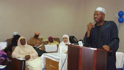 Director, Great Heights Academy, Hajiya Rabi Namtari and Director, Nurul Bayan International School, Hajiya Maryam Tahan and other participants listening.